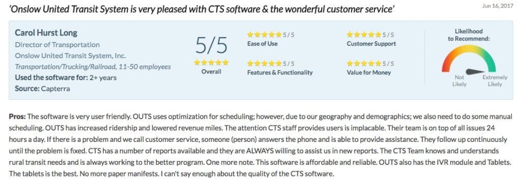 Learning and understanding all of the nuances included in the transit management system you choose are paramount to getting the most value possible from the software as quickly as possible. After all, the software you ultimately choose will power your entire business, so the customer service that comes along with it shouldn't be taken lightly.